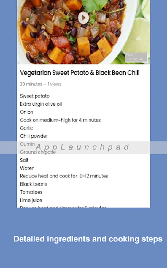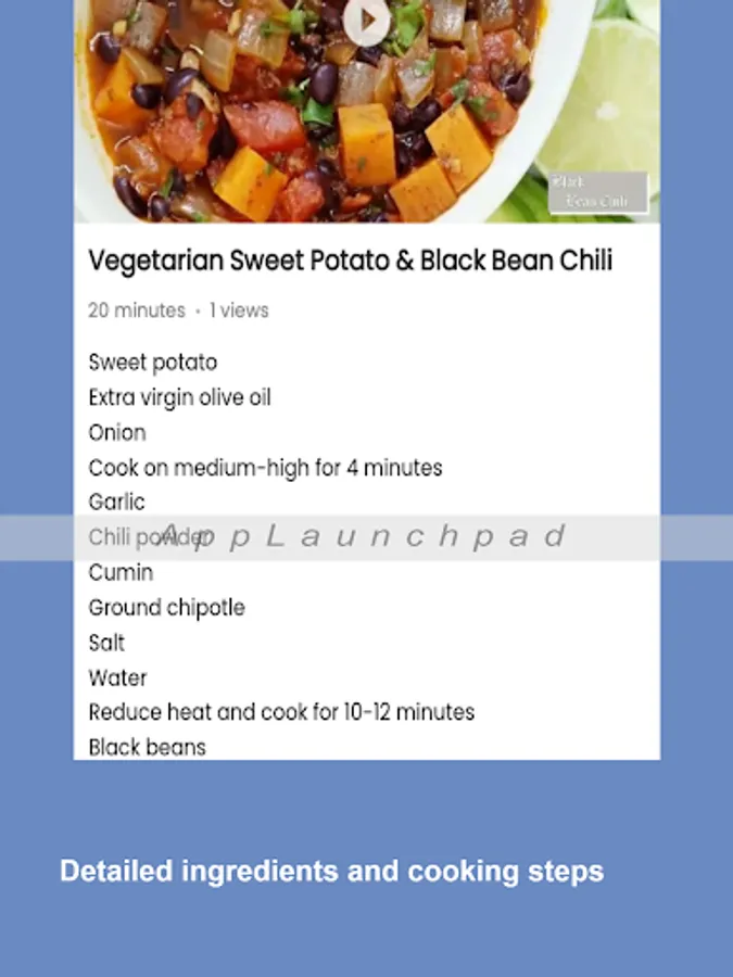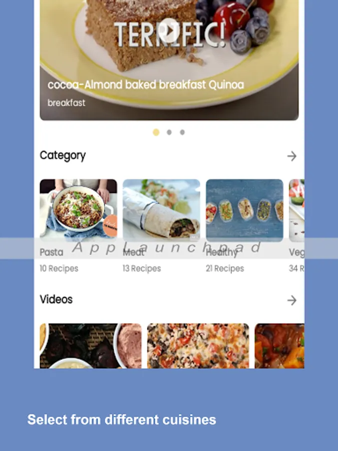 مئات من الوصفات الشهية واللذيذة بمقاطع الفيديو والشرح الوافي باللغة الانجليزية والعربية لترضي مختلف الأذواق وفي شتى الأنواع مثل وصفات الطبخ الخاصة باللحوم ، الحلويات ، السلطة والخضروات وغيرها الكثير، يتم تجديدها دورياً.