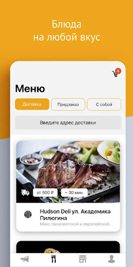 Using the application, you can not only order delivery, but also place an order by a certain time, but also independently pick up ready-made dishes from the restaurant, while receiving bonus accruals to the account.