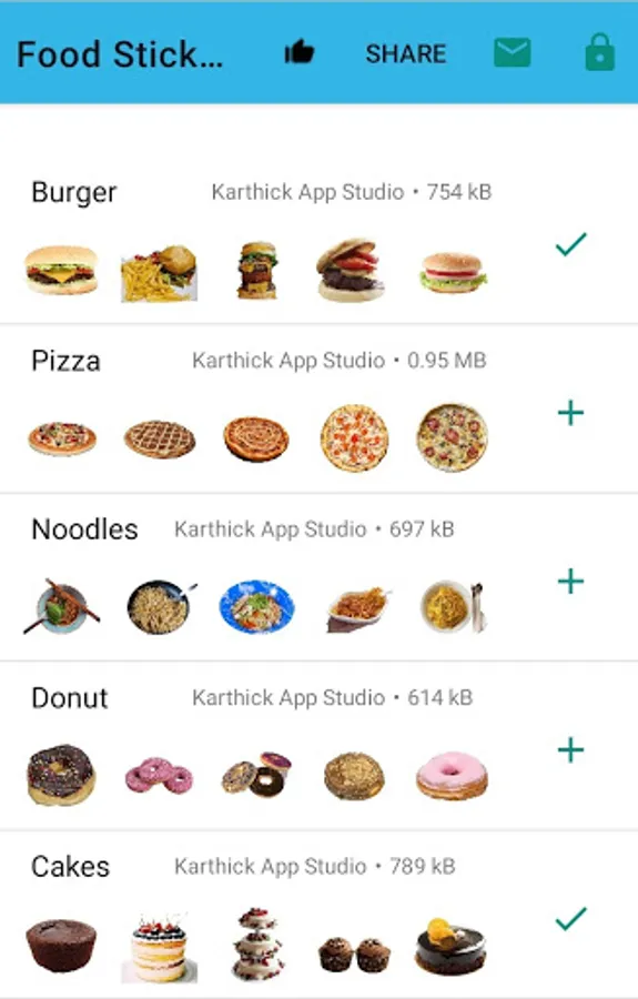 Food Stickers app has 300 food and juice stickers for WhatsApp. Now you can send food stickers in your WhatsApp chat with your friends and family. It is a real treat for all the food lovers.