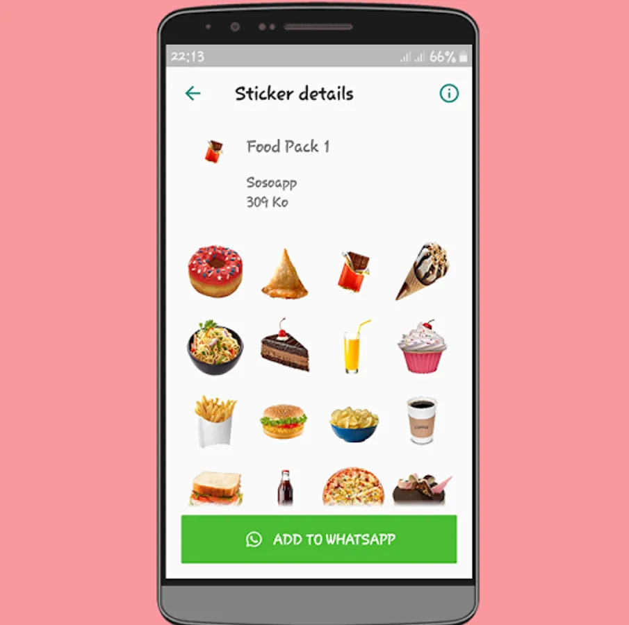 - Add your favorite WAStickerApps Food pack to your Whatsapp