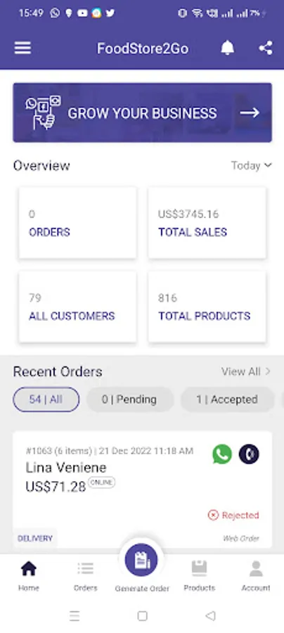 FoodStore2Go Merchnat is admin stores app.