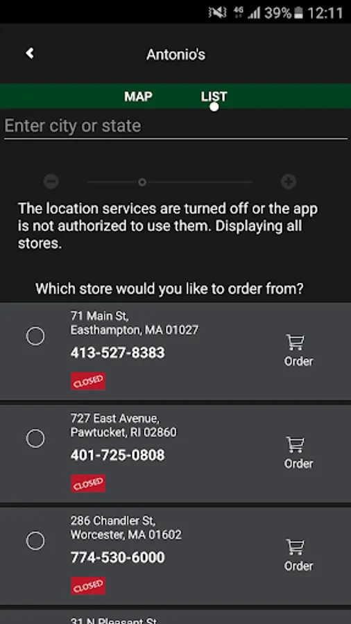 • Directly call a store from the app, especially when you're starving!