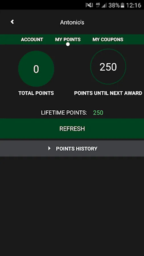 The official mobile app for Antonio's Pizza is now here, bringing you the ability to order from Antonio's Pizza locations. Ordering from Antonio's Pizza is as easy as eating a Pizza! With this app you can track your loyalty points, view your coupons, pay with your gift card and order your favorite food online.