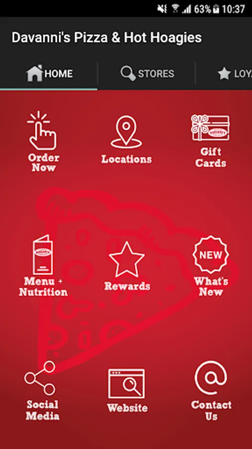 The official mobile app for Davanni's Pizza & Hot Hoagies is now here, bringing you the ability to order from all Davanni's Pizza & Hot Hoagies locations. Ordering from Davanni's Pizza & Hot Hoagies is as easy as eating a Pizza! With this app you can track your loyalty points, view your coupons, pay with your gift card and order your favorite food online.