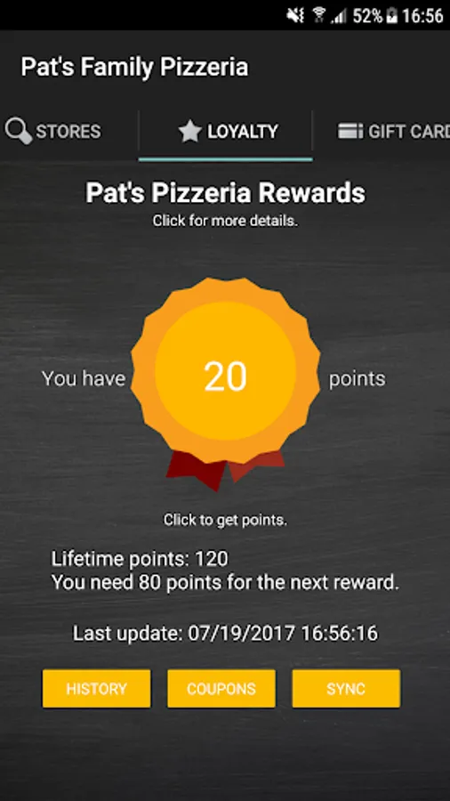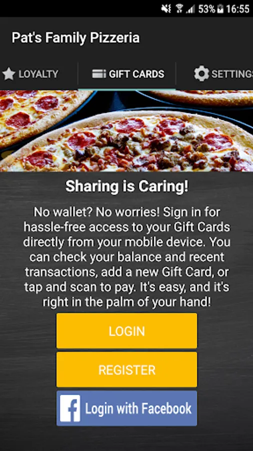 The official mobile app for Pat's Family Pizzeria is now here. Ordering from Pat's Family Pizzeria is as easy as eating a Pizza! With this app you can track your loyalty points, view your coupons, pay with your gift card and order your favorite food online.