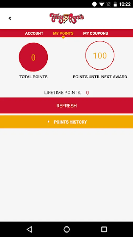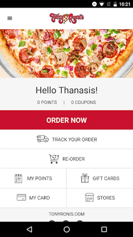 The official mobile app for Tony Roni's Pizza is now here. Ordering from Tony Roni's Pizza is as easy as eating a Pizza! With this app you can track your loyalty points, view your coupons, pay with your gift card and order your favorite food online.