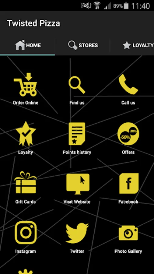 The official mobile app for Twisted Pizza is now here, bringing you the ability to order from all Twisted Pizza locations. Ordering from Twisted Pizza is as easy as eating a Pizza! With this app you can track your loyalty points, view your coupons, pay with your gift card and order your favorite food online.