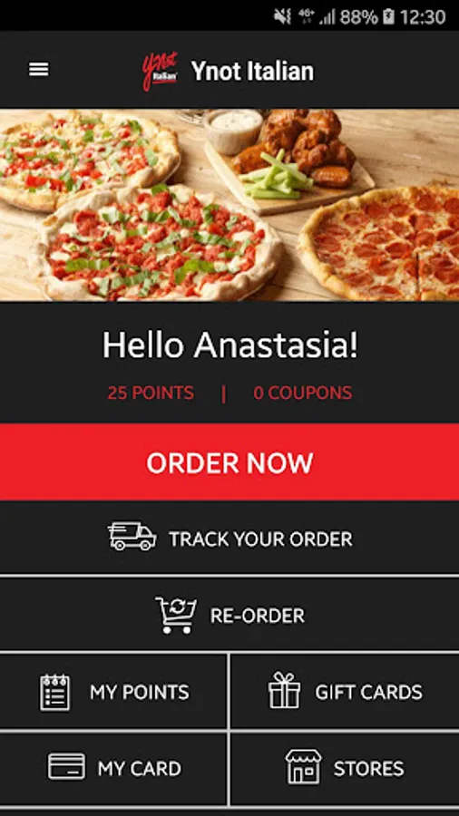 The official mobile app for Ynot Italian is now here, bringing you the ability to order from all Ynot Italian locations. Ordering from Ynot Italian is as easy as eating a Pizza! With this app you can track your loyalty points, view your coupons, pay with your gift card and order your favorite food online.