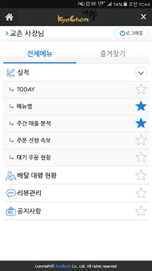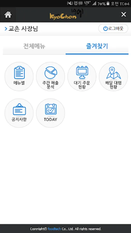 The 'Kyochon Chicken Boss' service is an app service that enables franchise POS management provided for all bosses using the POS solution provided by Kyochon F&B. You can check 'Sales Performance Management' anytime, anywhere through the Kyochon Chicken CEO app, not a franchise.