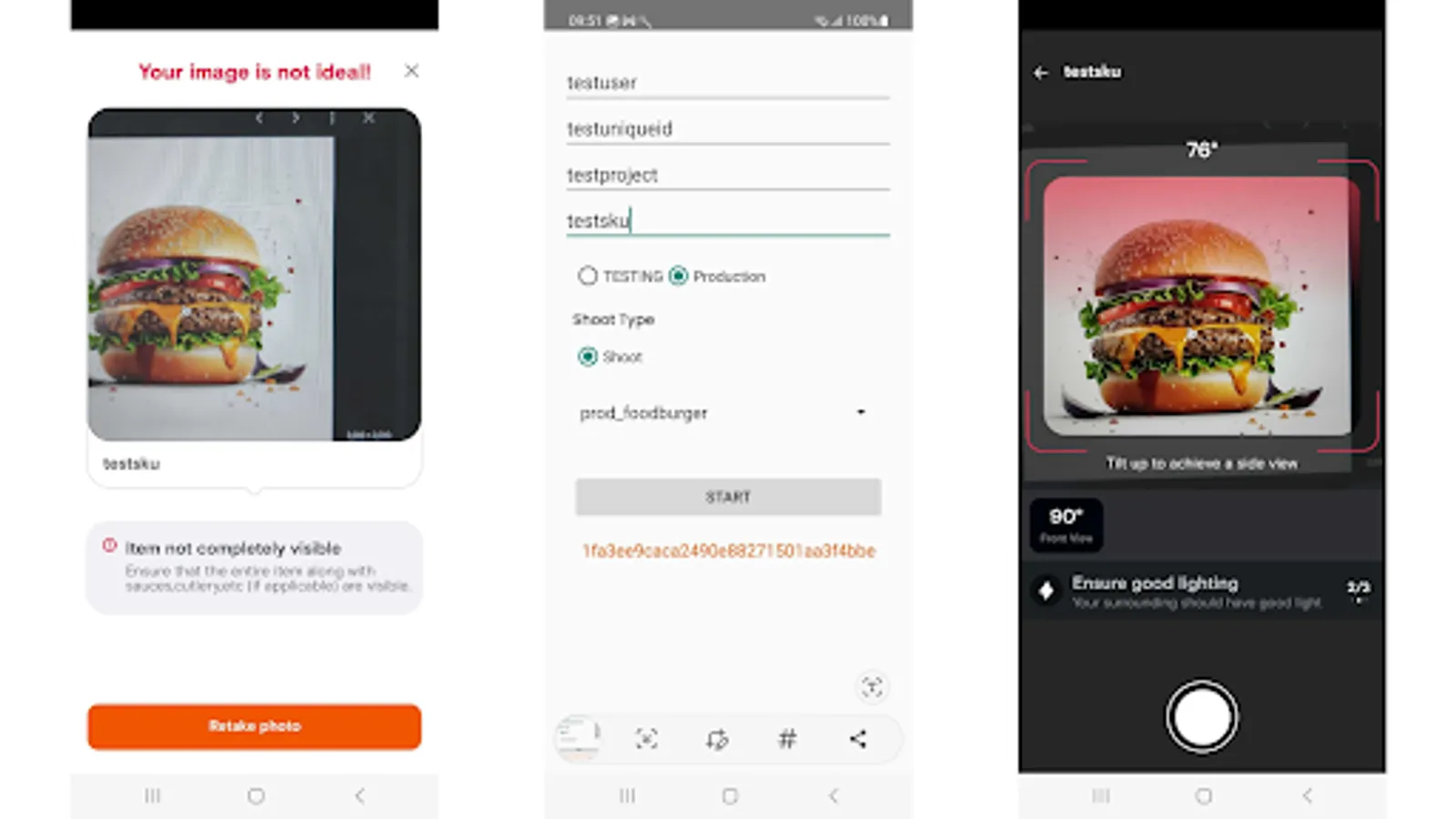 Welcome to Spyne Food Capture, the ultimate testing app for Spyne Food SDK. With this app, you can easily capture and enhance your food images for cataloging purposes. Spyne Food SDK provides powerful AI capabilities, allowing you to remove and replace backgrounds, perform colour correction, and adjust angles with precision.