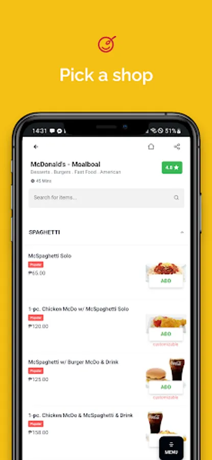 Find your favorite local restaurants, as well as top chains like Jollibee, McDonald's, Chowking, and more.
