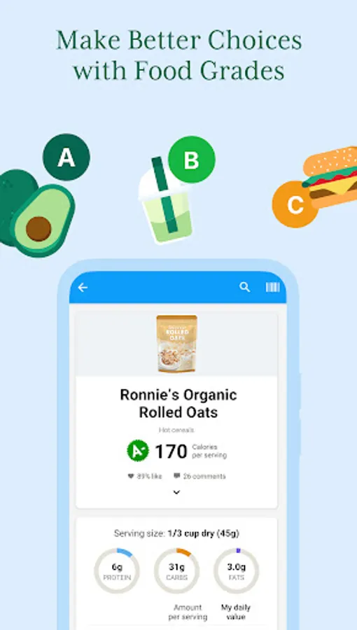 + Get a personalized nutrition grade (A, B, C, or D) for each food