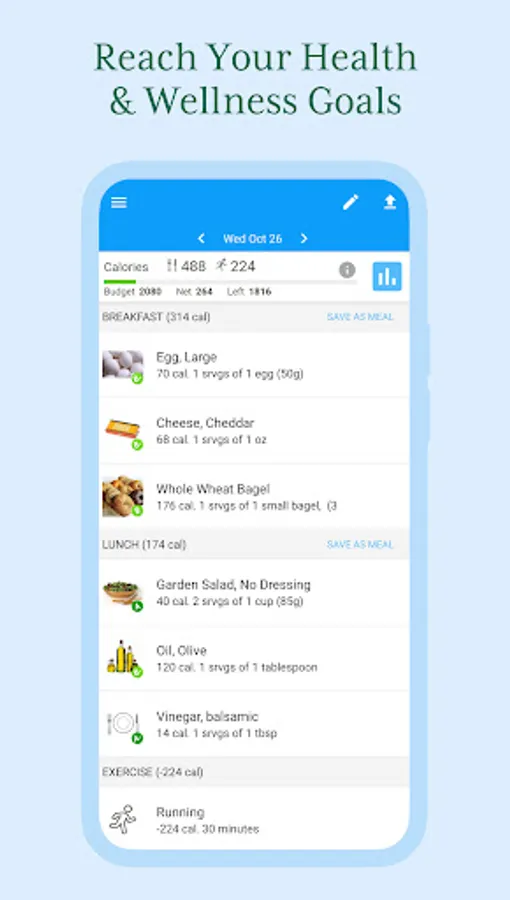 + Track the quality of calories & log your exercise