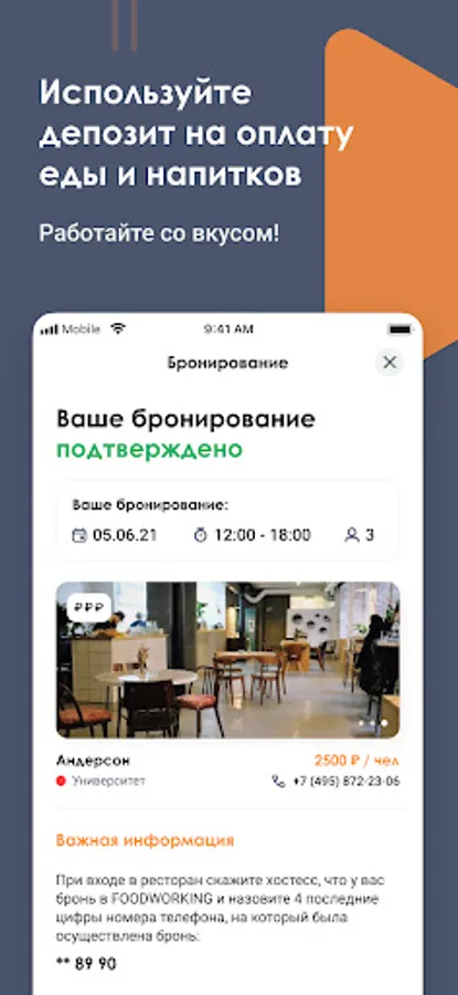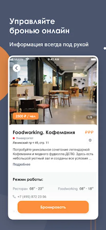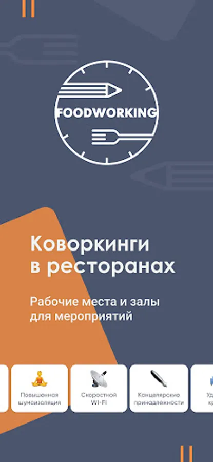 FoodWorking is a digital platform for booking workplaces, meeting rooms, meeting rooms in restaurants, cafes, and other establishments.