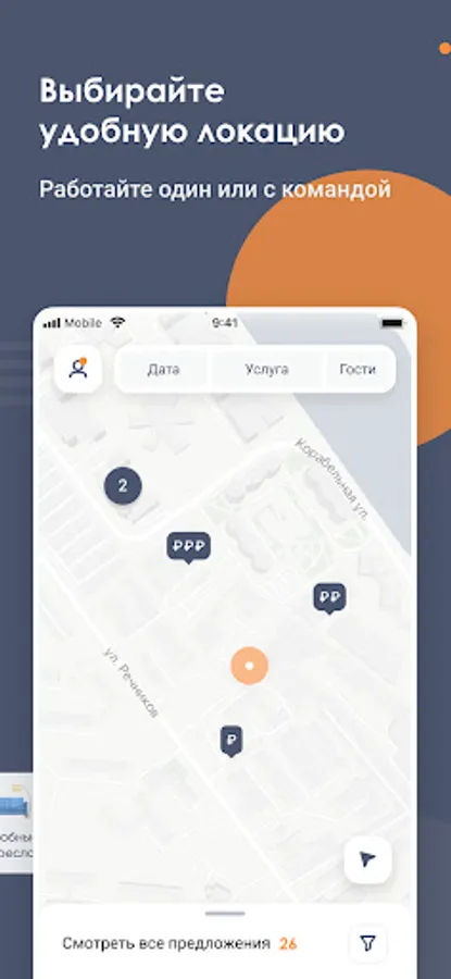 - Fast booking of a workplace, with the ability to pay in 2 clicks;