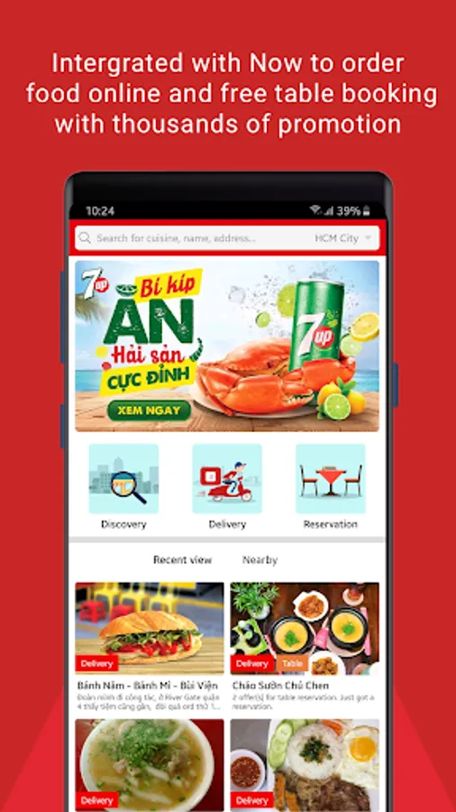 The application to "search" and "review" food locations in most of the provinces and cities in Vietnam such as Ho Chi Minh City, Hanoi, Da Nang, Hai Phong, Nha Trang....