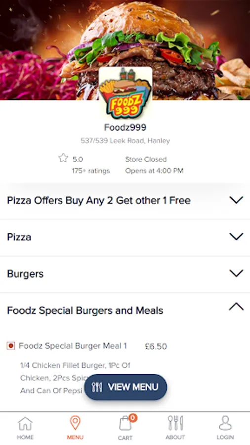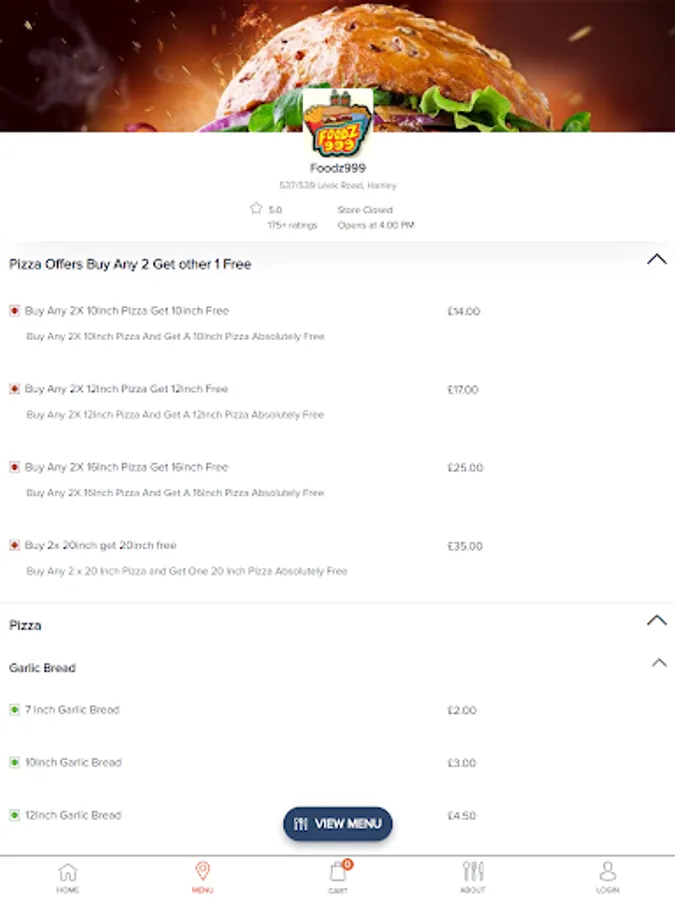 We aim to bring all of our customers the best value for money, services and food around, plus we are constantly aiming to improve our service to you. You can now order Takeaway in Stoke On Trent . Try our app which contains all our takeaway menu. We offer deliveries to all surrounding areas Abbey Hulton, Bucknall, Bentilee, Baddeley Green, Cobridge, Fenton, Hanley, Longton, Milton, Northwood, Smallthorne, Sneyd Green and Shelton in Stoke on Trent. And offer all our customers fast food delivery. You can now order your favorite Pizzas Kebabs, Burgers, Southern Fried Chicken and More online and get fast home delivery Here at Foodz999