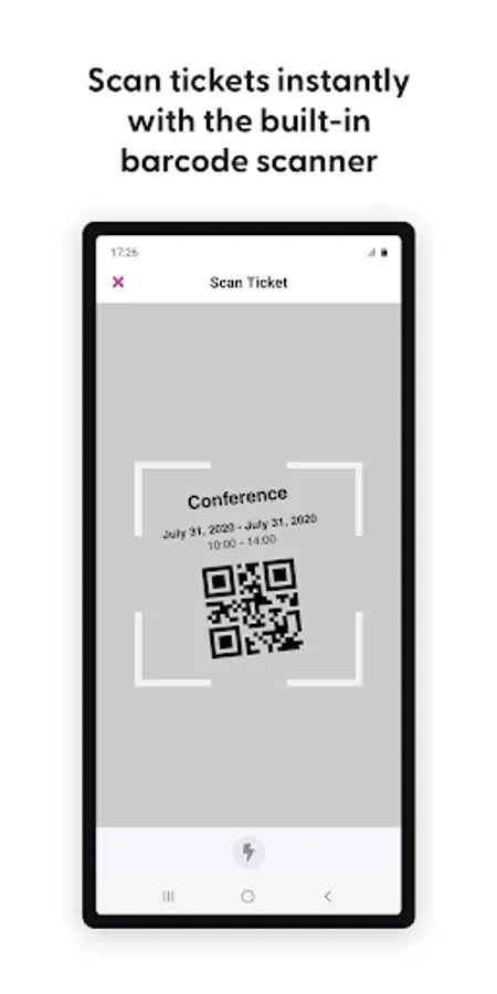 Scan the 1D barcode or QR code contained on the attendee's ticket directly from your device using the built-in camera or a handheld Bluetooth barcode scanner.