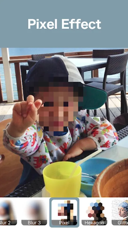 Anyone can easily add a blurry effect to a photo by simply touching it. You can choose from three types of effects (Gaussian blur, square pixelate, and hexagonal pixelate).