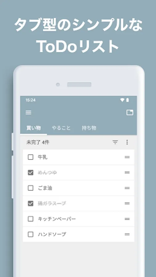 It is a simple ToDo list app. It is a free task management app that allows you to manage tasks by dividing them into tabs such as to-do lists and shopping lists.