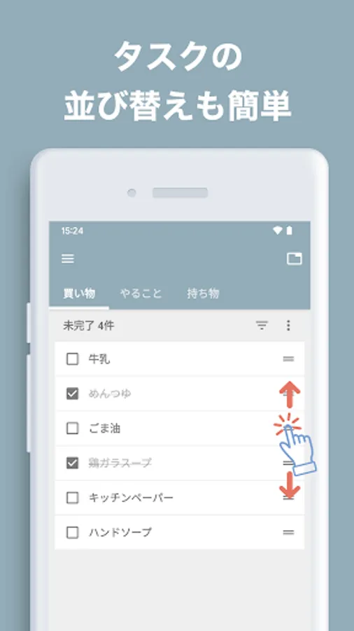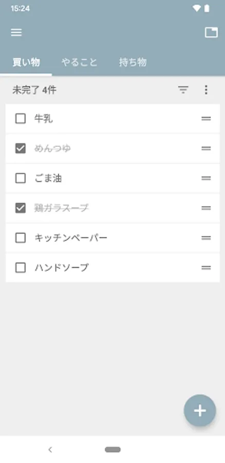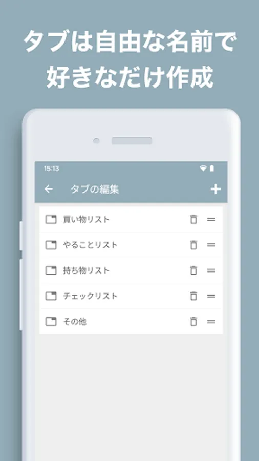 You can manage tasks by dividing them into tabs such as shopping list, to-do list, and inventory list. You can quickly switch categories with tabs and quickly see what tasks are left in which category. You can name tabs freely, and you can create as many tabs as you like.