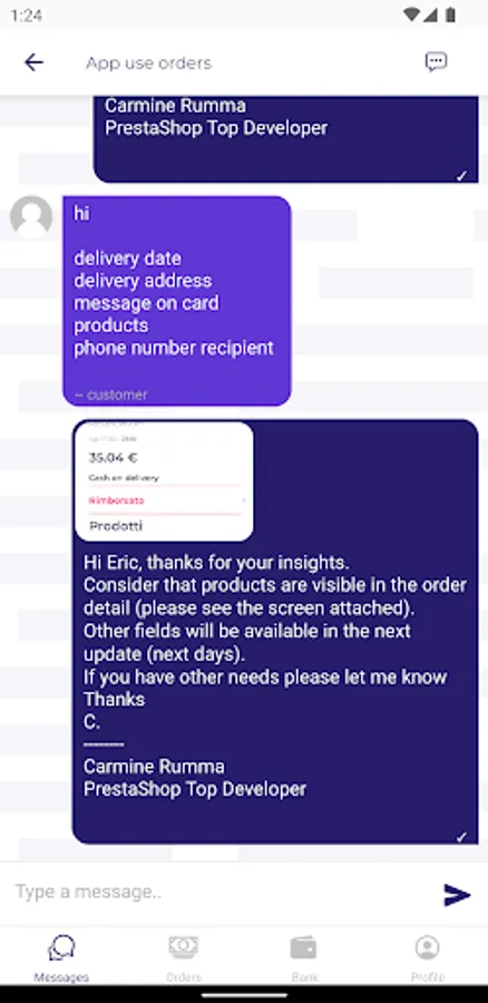 Manage easily communications with your customers,keep an eye of your orders and bank informations