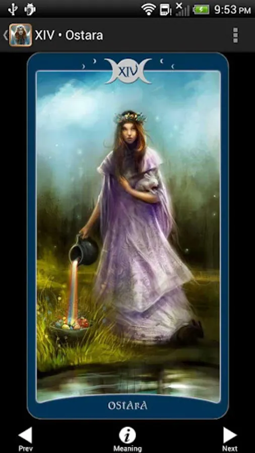 The Major Arcana cards in this deck follow the archetypal ideas in traditional Tarots, expressed from a Wiccan point of view. The deck brings Wicca vividly to life, with portraits of much loved deities, sacred Wiccan holidays, and scenes of Pagan life.