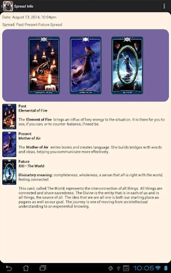 The Minor cards represent different elemental aspects of Pagan cosmology: Air, Water, Earth, and Fire. Each suit expresses the mysteries of its element. In As Above, the court cards are The Elemental, Maiden, Mother, and Crone, instead of the usual royalty.