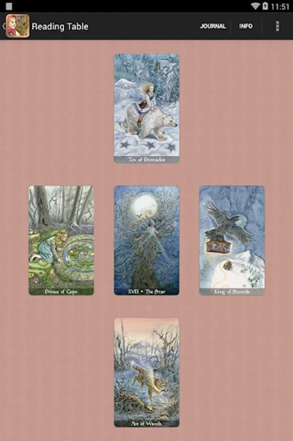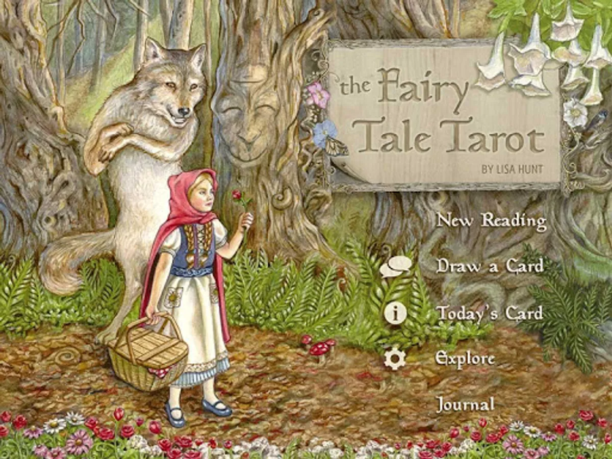 Out of print and exorbitantly expensive as physical cards, The Fairy Tale Tarot by Lisa Hunt has never before been so beautifully showcased! The Fairy Tale Tarot presented by The Fool’s Dog also features a unique card, Snow White and Rose Red with their Bear, drawn expressly for this app.