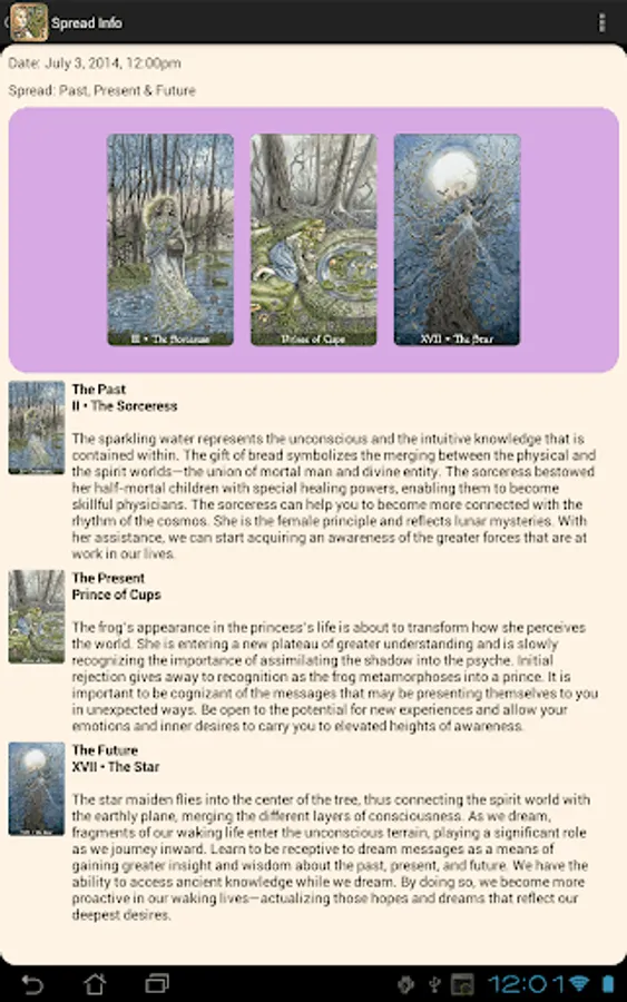 This is a very deep and multi-layered Tarot. This deck encourages us to engage the world of fairy tales in a Jungian manner. Lisa Hunt’s art is so lovely that the wisdom and beauty of her writing is sometimes overlooked. Once Upon a Time, the book included in The Fairy Tale Tarot app, could easily stand alone as bedtime reading for children and adults. For a bedtime treat, let your child Pick A Card, and then read the resulting fairy tale aloud!