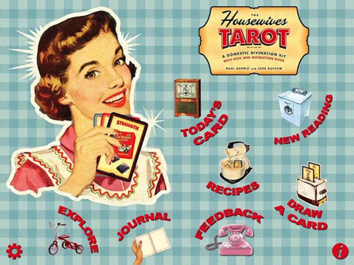 Should you bring potato salad or deviled ham to the potluck supper? Is your kitchen forever spotless and lemon fresh? Does your mother-in-law adore you? All these dilemmas, and many more, are answered by domestic divination with the Housewives Tarot, now optimized for the 21st century on your iPhone, iPad and iPod Touch.