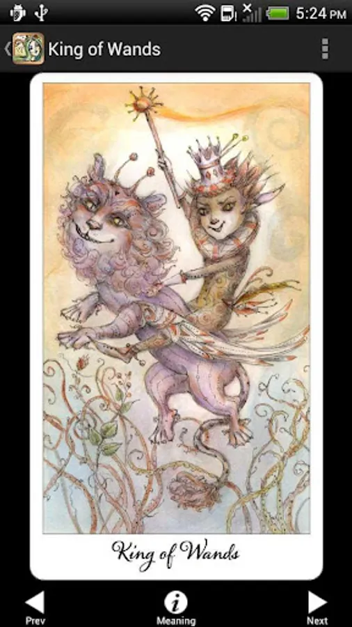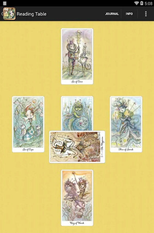 Paulina Cassidy has endowed each character in Joie de Vivre Tarot with a witty and appropriate persona. Thus we find Vitality, the winged merlion, as The World, and Benevolence donating to Hopeful in the Six of Pentacles. The King of Wands is named Dynamo, and Bliss is the Six of Cups, with her merbunny friends, Charity and Innocence.