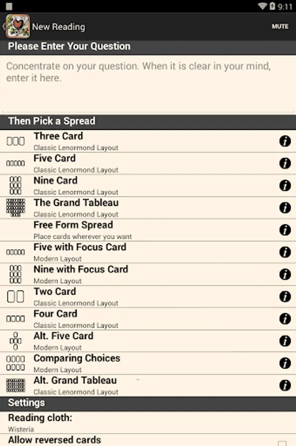 *11 Lenormand spreads built in