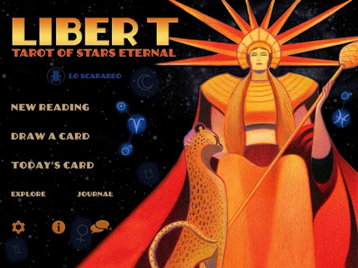 Liber T: Tarot of Stars Eternal is a 21st century tribute to Aleister Crowley’s sublime Thoth Tarot. The Major Arcana cards resemble Lady Frieda Harris’ art, rendered in a softer, less geometrical style. The Minor Arcana takes the Thoth material to a new level, evoking shock and awe. The fully illustrated pips integrate esoteric symbolism and arcane teachings about the Egyptian astrological decans into the designs. Far from being a clone of Thoth, Liber T: Tarot of Stars Eternal is a descendant. The Major cards are an homage to the strength of Thoth’s lineage. The Minor Arcana adds new inspiration to Thoth, evolving the work of Crowley and Harris in a unique direction suitable for a new aeon.