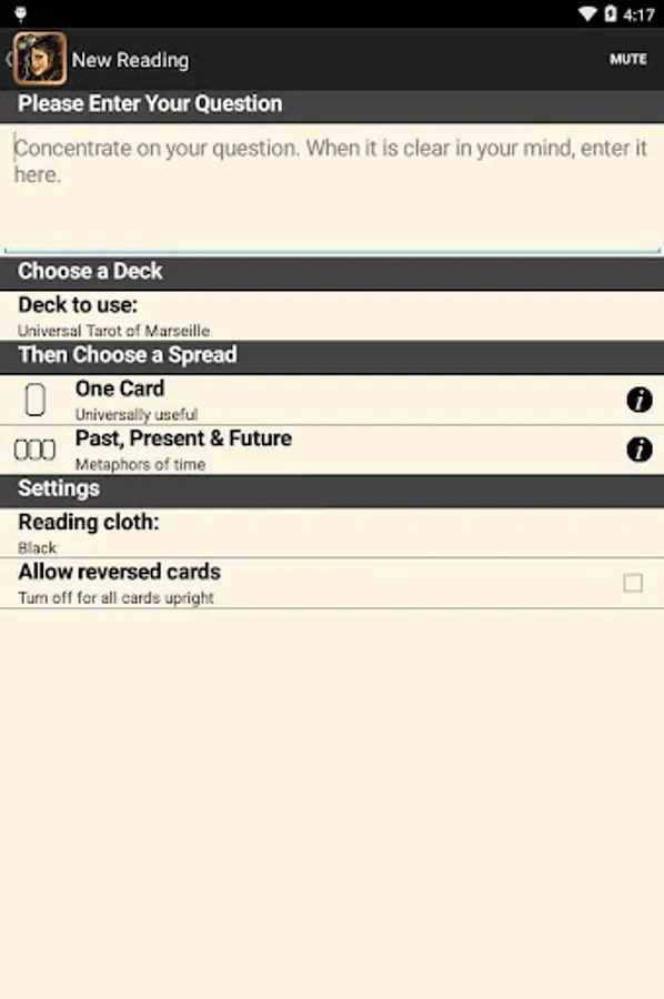 *Allow reversed cards or not