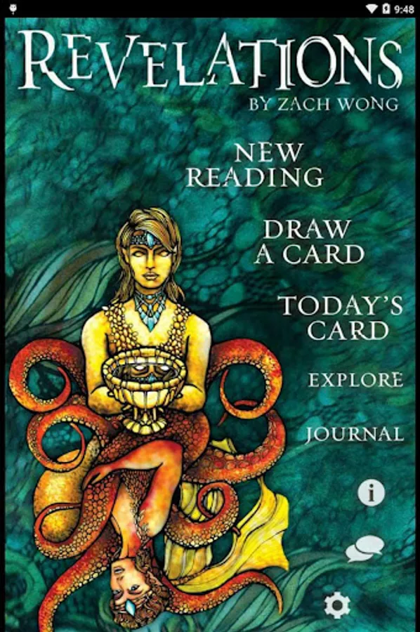The familiar Tarot archetypes in Revelations wear masks, invoking mythic visitations of gods in human form. The deck’s detailed images glow like gemstone colors in stained glass. Revelations loosely follows RWS symbolism, with dynamic and witty interpretations of the images.