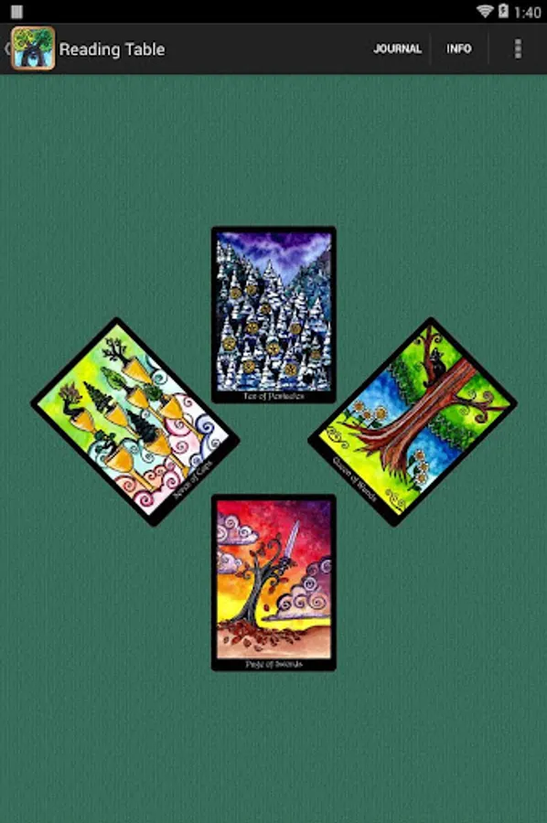 Discover the forest within The Tarot of Trees! Whimsical trees are the characters in this deck’s Journey of the Fool. This deck gives the normally human-centric world of Tarot a naturalistic twist. With its bright, colors and quirky, friendly style, The Tarot of Trees is easy to read for those familiar with the RWS. The imaginatively phrased images free us from our own preconceptions, and open up new insights. You’ll never see trees, or Tarot, exactly the same way again!