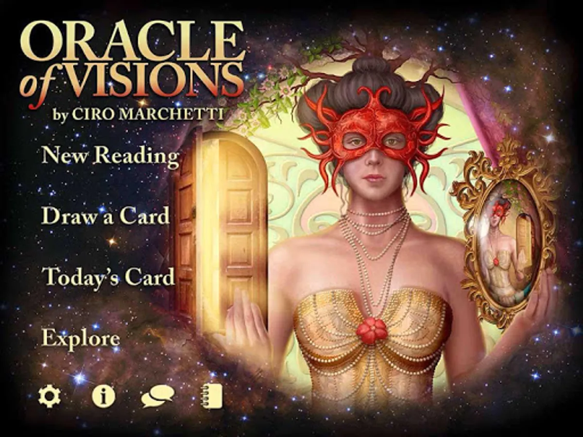 Explore fresh perspectives, with Oracle of Visions by Ciro Marchetti. This lavish fifty-two card extravaganza features all of Ciro’s artistic signatures: carnival jesters, steampunk devices, masks, and gorgeous art. Although the cards include some figures from history, Oracle of Visions is a very modern deck. Ciro deliberately created the scenes to be immediately accessible, and the cards are easier to read than Tarot.