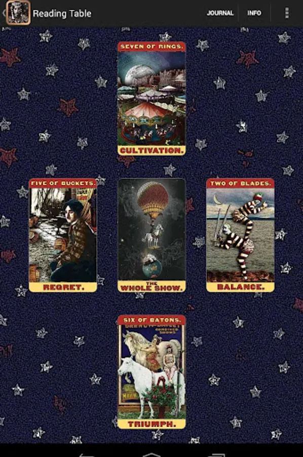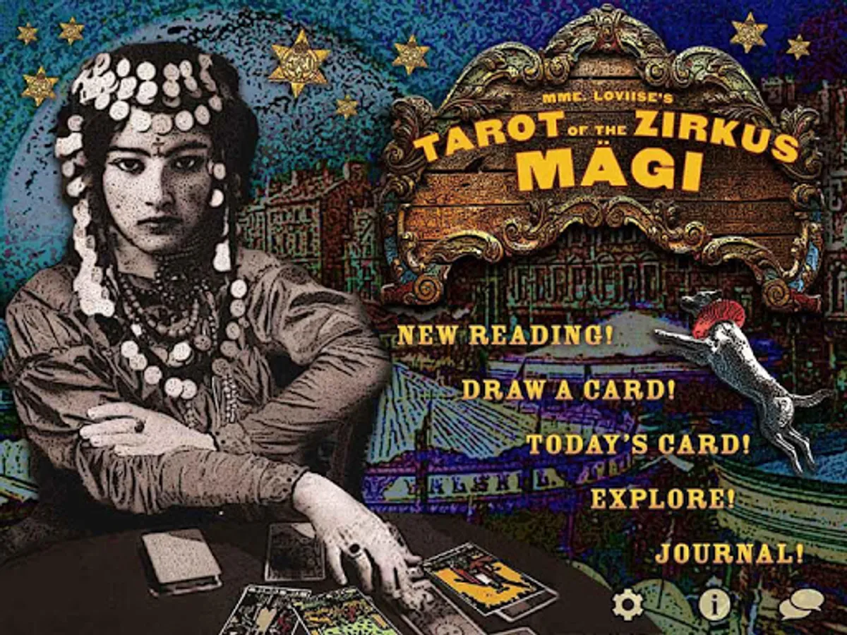 With imagery from the RWS deck but card titles from Thoth, Tarot of the Zirkus Mägi gives the Tarot scenes an edgy twist. Art connoisseurs and occultists alike will enjoy this fantastical circus! The app includes The Mostly Sensible Little Big Circus Tarot Book with meanings for each card, and See Them Dance, the novel that inspired the Tarot deck.