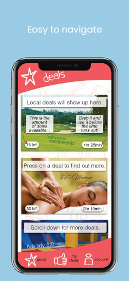 Once the app has been downloaded customers can then customise the types of deals they would like to be sent. The app then notifies customers when a deal is available in their chosen category via sms and in the notification panel. Each deal shows a live countdown until the deal expires and also a counter depicting how many deals are left in the offer.