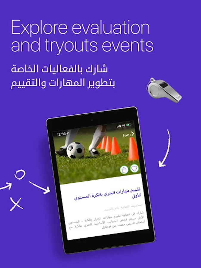 إذا كنت لاعباً، يمكنك إنشاء حسابك الشخصي الخاص مجاناً وإضافة الصور ومقاطع الفيديو لمهاراتك، بعد تسجيل الحساب ستتمكن من مشاهدة الفعاليات الخاصة بتطوير المهارات للحصول على نجوم أعلى في ملفك الشخصي. يمكنك التعرف على اللاعبين والأكاديميات والوكلاء وقوائم الأندية في مدينتك أو بلدك.