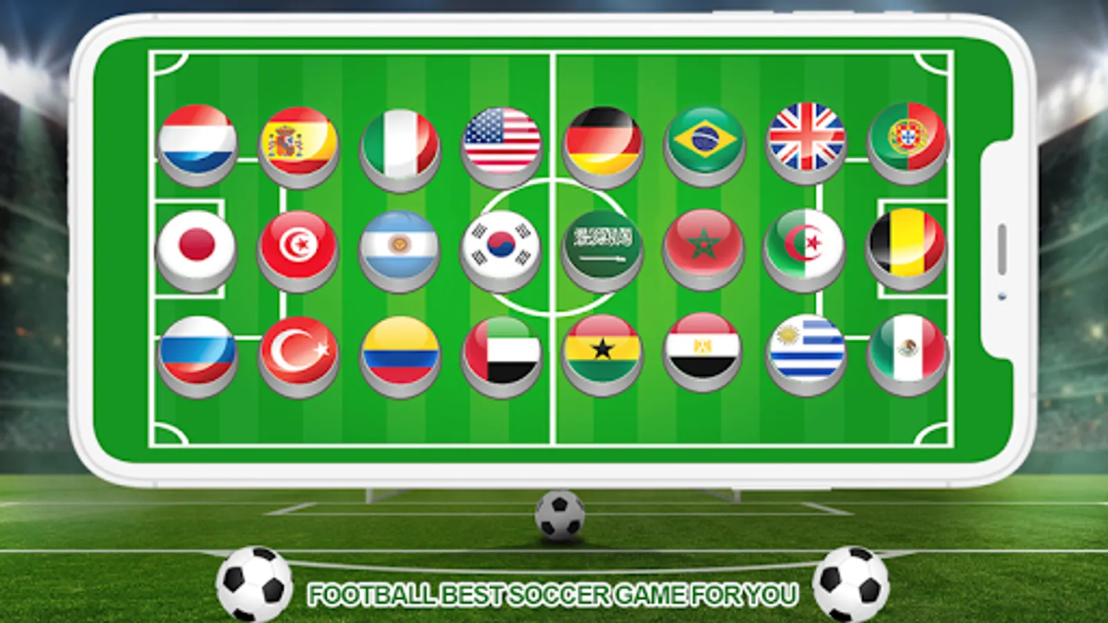National teams supported by our air soccer game: United States, England, Nigeria, Belgium, Brazil, Egypt, France, Germany, Italy, Argentina, Mexico, Portugal, Russia, Saudi Arabia, Spain, Bahrain, Tunisia, Turkey, Morocco, Ghana, Colombia, Irak, japan, South Korea, United Arab Emirates, and Lebanon in last we have worked to support all country enjoy!