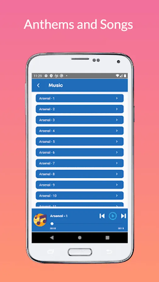 You can listen to your most favourite Arsenal songs in this app. Arsenal app provides the best musical experience for you with lock screen controls and plays in notification bar. One of the most gorgeous and powerful music player for Arsenal fans.