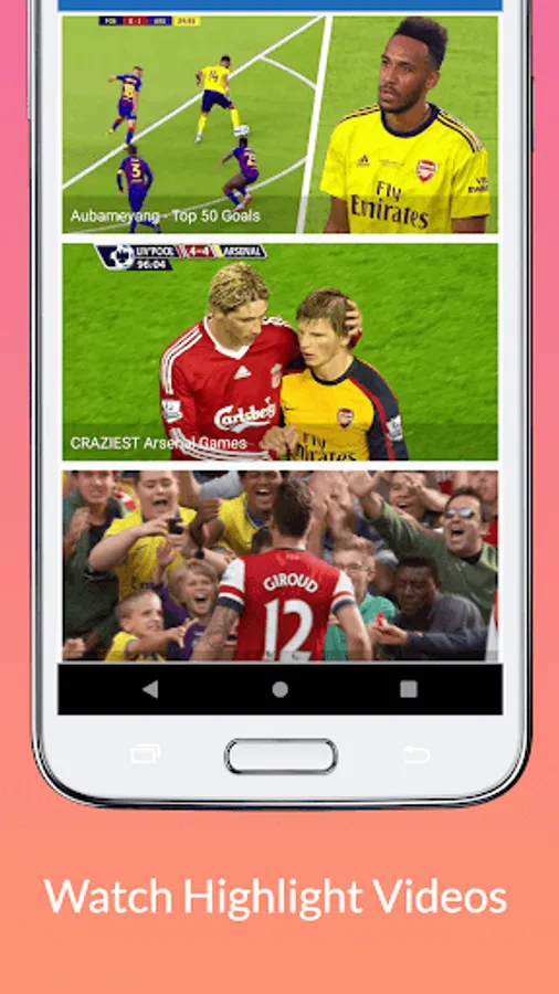 Watch incredible Arsenal match recap videos on this app. Find Ultra HD videos, support 4K. Arsenal app is one of the best football apps for android tablet and android phone. Arsenal scores and games could be followed easily by one click.