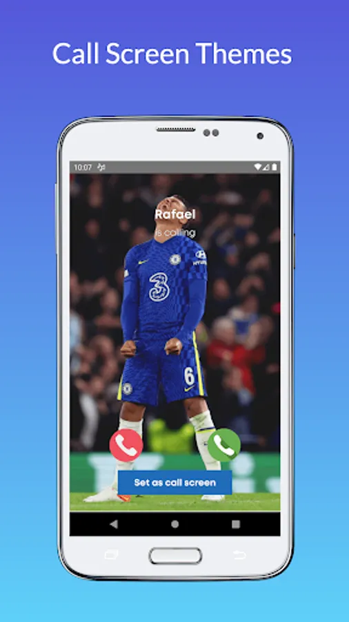 Change phone color Caller screen style with the Chelsea Wallpaper app and create an Android incoming call screen theme. Decorate your call screen with amazing beautiful, dynamic and stylish Chelsea FC color caller screen themes. Use this caller screen app to customize your call wallpaper and set a particular call screen for your families and friends. Color flash notification for incoming calls.