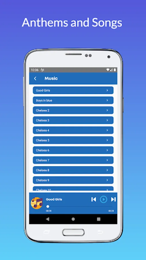 You can listen to your most favorite Chelsea FC songs in this app. Chelsea Fan app provides the best musical experience for you with lock screen controls and plays you can manage from the notification bar.