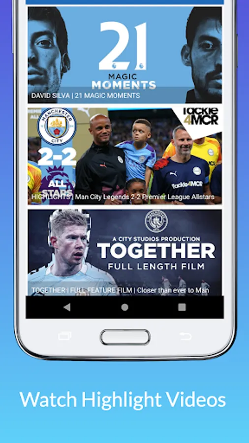 Watch Manchester City match recap videos on this app. Find Ultra HD videos, support 4K. Man City app is one of the best football apps for android tablet and android phone. MCFC scores and games could be followed easily by one click.