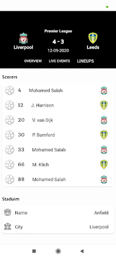 The Football Live Scores app displays schedules/fixtures overviews per country/league, live tables during soccer matches, top scorers for all football leagues, live football statistics (ball possession, shots on goal etc), lineups . Additionally, you can preview players and teams information.