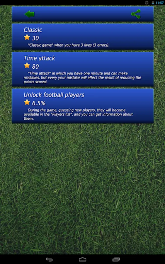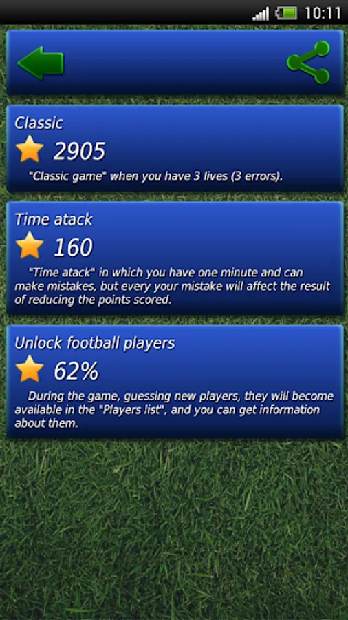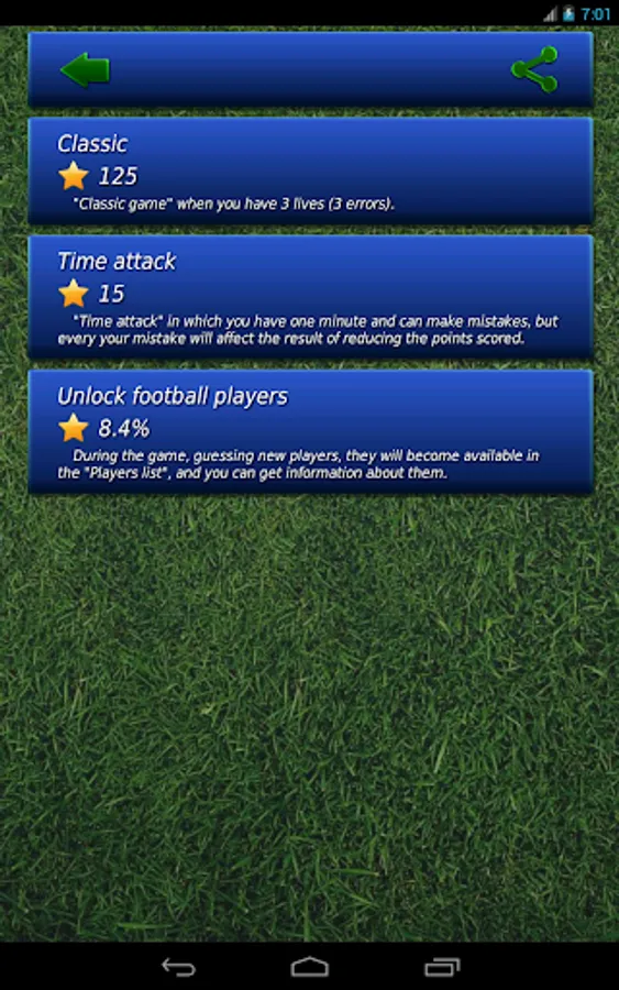 The game is built as a test that allows to test your knowledge of football and guess the famous players.