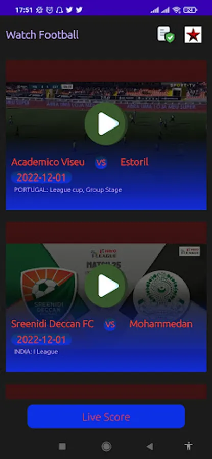 Football is a very famous sports in the world. People enjoy live football matches with great passion everywhere. With this free football live score tv app users can enjoy live soccer matches scores and today live football match schedule from world top soccer leagues. Watch football live matches scores and get live soccer tv match updates with fast football live score server.